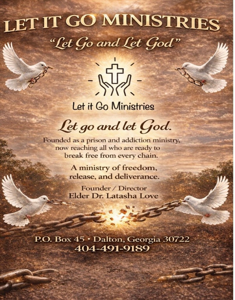 Let it Go Ministries was founded in 2015 during my time in prison with the mission to help individuals—both incarcerated and beyond—release anything that keeps them from drawing closer to God and walking successfully in their Christian journey.