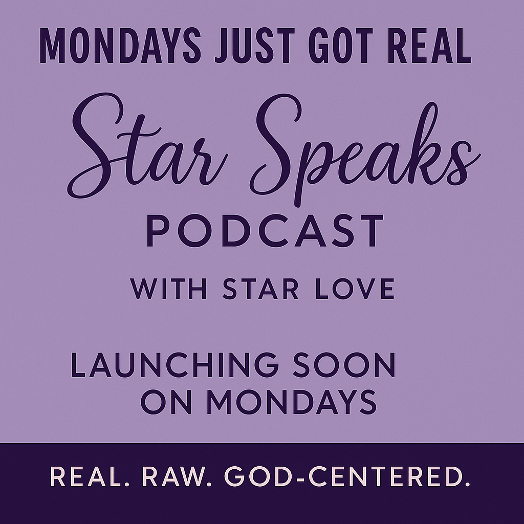 Are you ready for something new, refreshing, and real to kickstart your week? Introducing Star Speaks—a God-centered podcast that’s calm, clear, and full of truth. Every Monday, join Star for heartfelt reflections, transparent conversations, and real-life inspiration rooted in faith. It’s not just a podcast—it’s your new Monday ritual. Real talk for real people, anchored in the Word and led by grace. Start your week with purpose, peace, and the presence of God.
